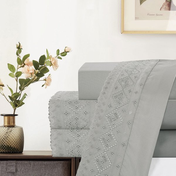 Jogo de Cama Provence Queen Bordado Inglês- 4 Peças | Têxtil Arte -