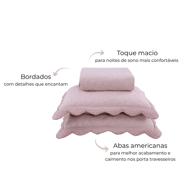 Kit Colcha/Cobre Leito Requinte King Bordada - 2 Porta Travesseiros | Têxtil Arte - Rose Sepia