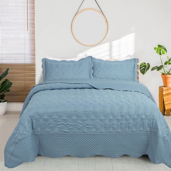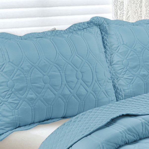 Kit Colcha Cobre-Leito Requinte Queen Bordada - 2 Porta-Travesseiros | Têxtil Arte - Azul