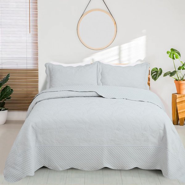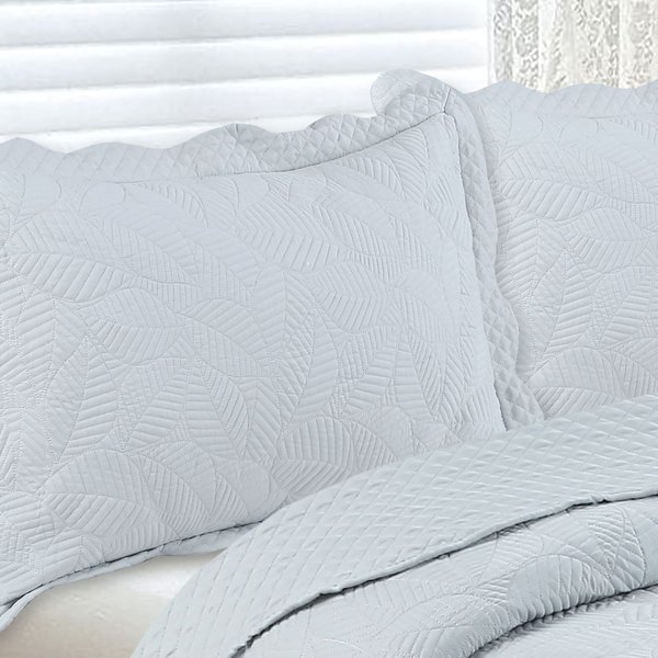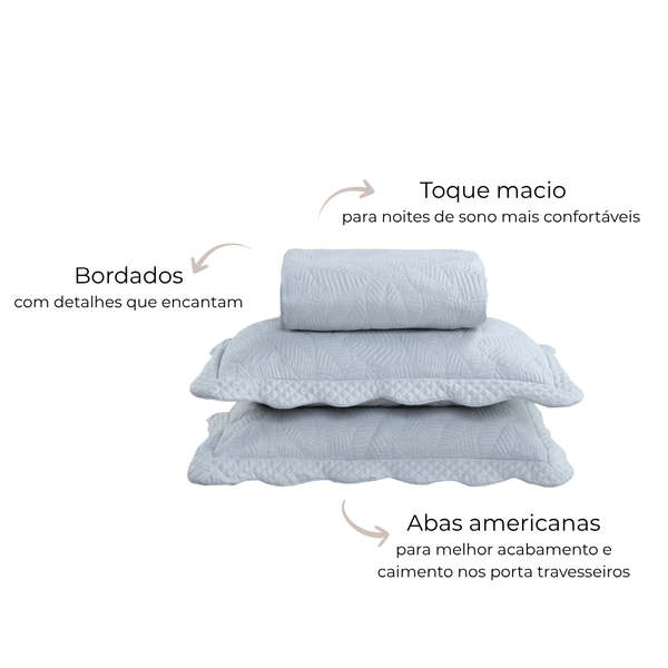 Kit Colcha Cobre-Leito Requinte Queen Bordada - 2 Porta-Travesseiros | Têxtil Arte - Cinza Claro