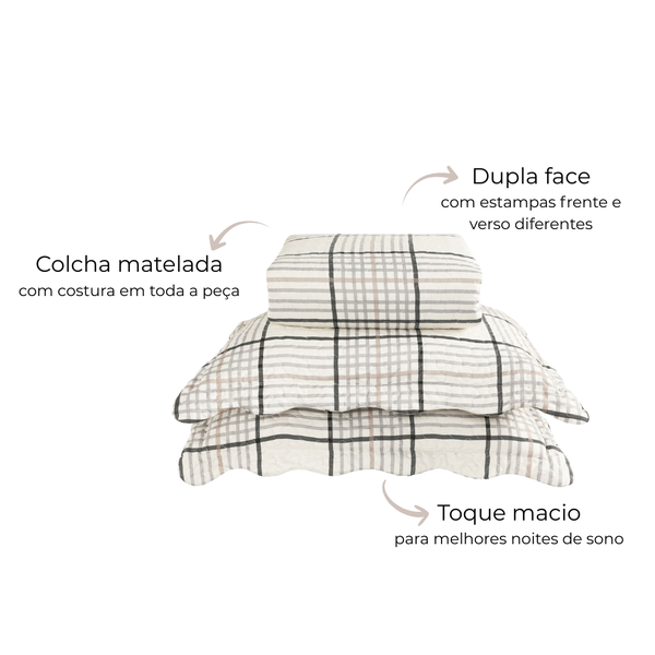 • Colcha matelada com costuras em toda a peça, garantindo durabilidade mesmo após várias lavagens
